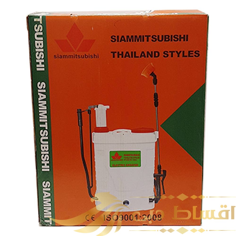 سمپاش دو کاره میتسوبیشی با ابعاد 55x17x36 سانتی متر و محدوده ظرفیت مخزن بین 10-20 لیتری موجود است. لانس سمپاش از نوع تلسکوپی و از جنس استیل بوده و ظرفیت پاشش آن 3٫6 لیتر در دقیقه است،همچنین طول شلنگ 1٫15 متر می باشد، از ویژگی های این سمپاش می توان به ، وجود نشانگر ولتاژ ، قابلیت کارکرد هم به صورت دستی و هم به صورت الکتریکی و پیچ کنترل سرعت اشاره کرد؛ نوع پمپ موتور دستی بوده و دارای کلید خاموش روشن می باشد و دارای مکانیزم سوئیچ می باشد و داشتن کمربندی استاندارد و منعطف برای حمل رو شانه جابه جایی دستگاه را آسان تر می کند.