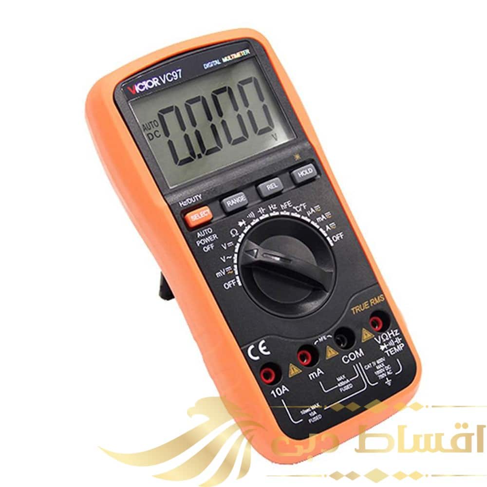 مولتی متر دیجیتال اتورنج سلکتوری AC،DC مدل VC97 کارخانه Victor جزء یکی از کاربردی ترین و اصلی ترین تجهیزات دقیق تست و اندازه گیری جهت تعمیرات، تولید و راه اندازی در آموزشگاه ها، آزمایشگاه ها، صنایع، کارخانجات، کارگاه های تولیدی و تعمیرگاه های برق و الکترونیک محسوب میشود و از طریق آن میتوان ولتاژ، جریان، مقاومت الکتریکی، ظرفیت خازنی، فرکانس و دما را اندازه گیری نمود.