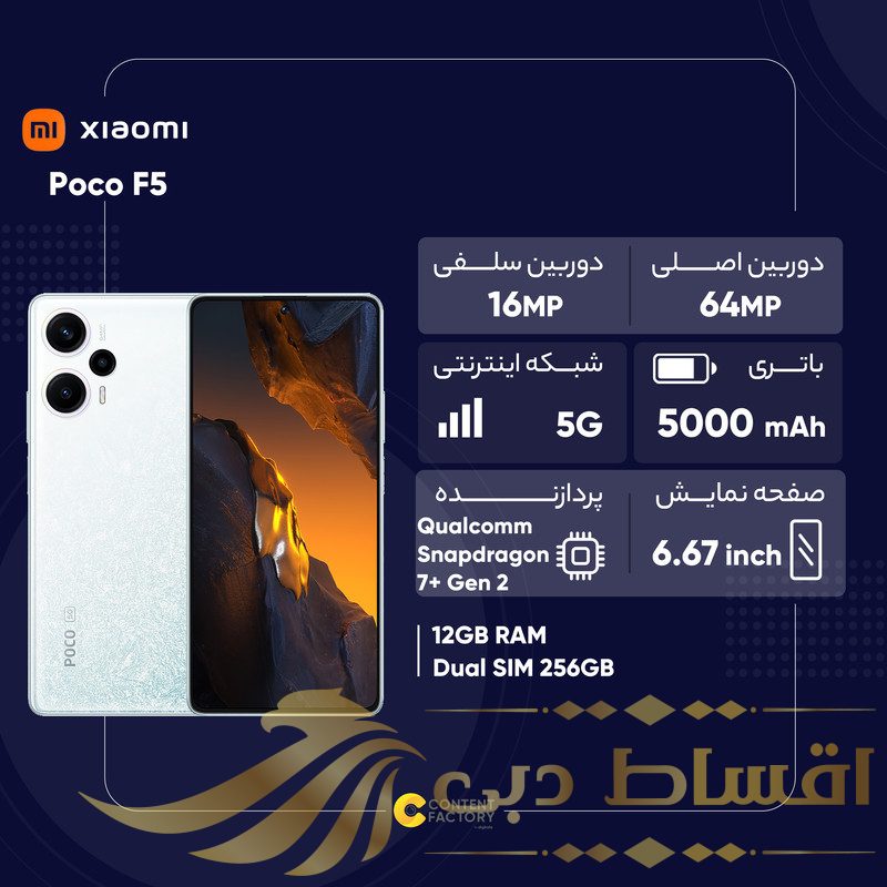 اگر به دنبال یک گوشی هوشمند با کیفیت و قیمت مناسب هستید، حتما باید به سری گوشیهای poco از شرکت شیائومی توجه کنید. یکی از این گوشیها، Poco F5 است که دارای مشخصات فنی بسیار برجستهای است. این گوشی دارای یک صفحه نمایش بزرگ 6.67 اینچی با رزولوشن 1080×2400 پیکسل است که قابلیت نمایش با نرخ بروزرسانی 120 هرتز و روشنایی 1000 نیت را دارد. با سنسور اصلی 64 مگاپیکسل، تجربه عکاسی با این گوشی حتما حیرتانگیز خواهد بود. همچنین دوربینهای ultrawide 8 مگاپیکسل برای عکاسی در فضای گسترده و دوربین ماکرو 2 مگاپیکسل برای عکاسی از نزدیک، دوربینهای عالی این گوشی را تشکیل میدهند. دوربین سلفی نیز با سنسور 16 مگاپیکسل عملکرد عالی دارد. این گوشی همچنین توانایی ضبط ویدیو با کیفیت 4K را داراست. با پردازنده قدرتمند اسنپدراگون 7 پلاس، عملکرد بازیهای سنگین و برنامههای کاربردی بسیار عالی است. با باتری با ظرفیت 5000 میلی آمپر ساعت و فناوری شارژ 67 وات، این گوشی از مشخصات سختافزاری بسیار خوبی برخوردار است. به طور کلی، میتوان گفت که Poco F5 با صفحه نمایش با کیفیت، طراحی زیبا، دوربین قوی و مشخصات سختافزاری مناسب، یکی از بهترین گزینهها در دسته گوشیهای متوسط قیمت است.